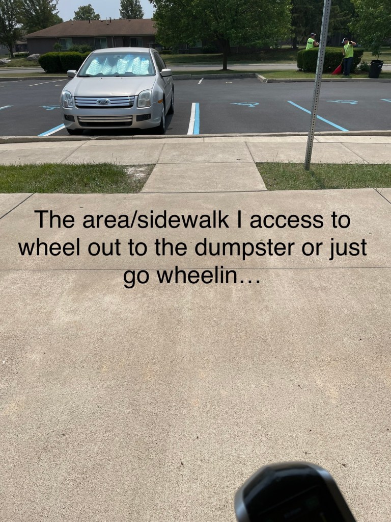 Those who know me and my Multiple Sclerosis journey and are aware I get around in my bad a$$ hot pink power wheelchair and how annoyed I get when people just do disrespectful things. I posted pictures so you can see why I’m annoyed! Today, the maintenance supervisor and the HUD inspector are making their random inspections. 🙄 this is the 2nd one within 2 months.