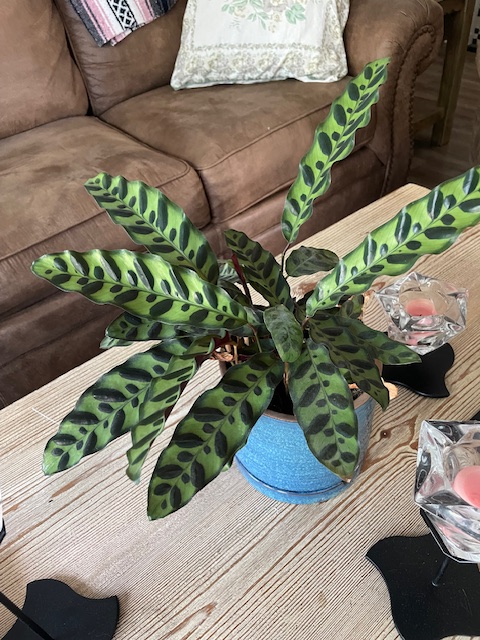 First, I wanted to share my picture of the “Rattlesnake Plant” that I bought in Michigan before the move. The plant was dying at the time of the move, but now it has transformed into a beautiful vibrant, spotty green, animal friendly plant. This plant is my reminder and I see it everyday in the living room that even though things are going in everyday life, the spots are a reminder to work on myself and to remind me that people can be “rattlesnakes” and spotty. Rattlesnakes have attitudes, mean behavorial issues, and for me the changes in my life are the green parts “joys and calming” things that I work on within me and this journey. The brown leaves on the plant are dead things that just did not work in my circle that I have created with my well being.